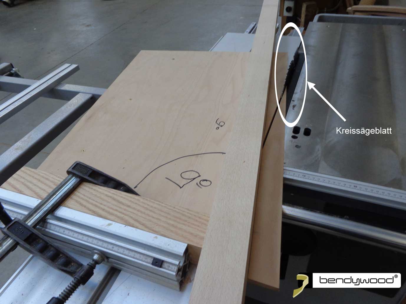 Schablone für Kreissäge zum Schneiden eines 9° Schräg-Schnitts