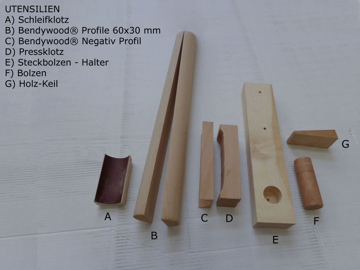 - Bereitstellung von Negativprofil-Stücken, Pressklötzen, Keilen, Bolzen, Zwingen, Spanngurt.
