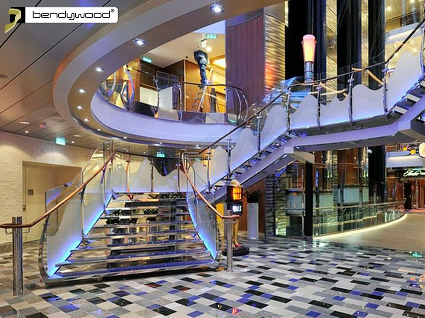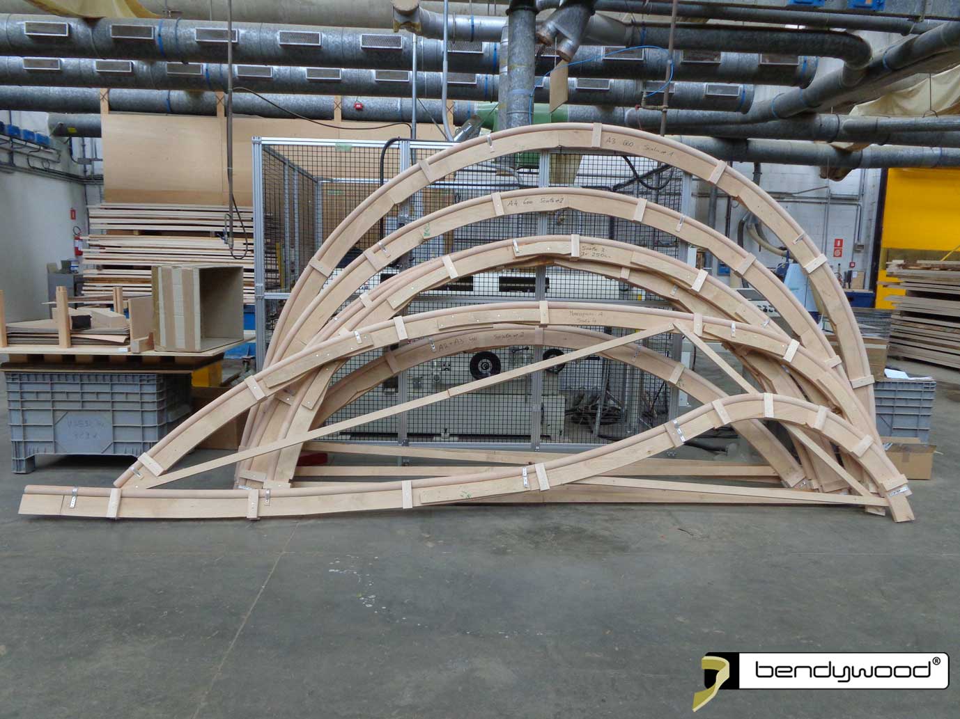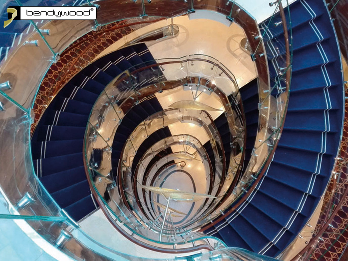 Round bending handrails 48 mm in Bendywood®-beech ; diagonal jointed