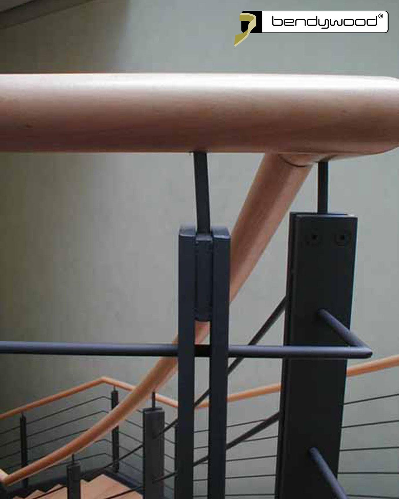 Round bending handrails ø60 mm in Bendywood®-beech ; diagonal jointed