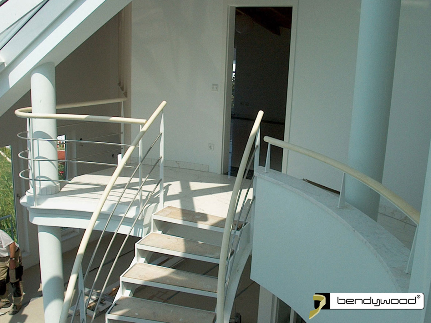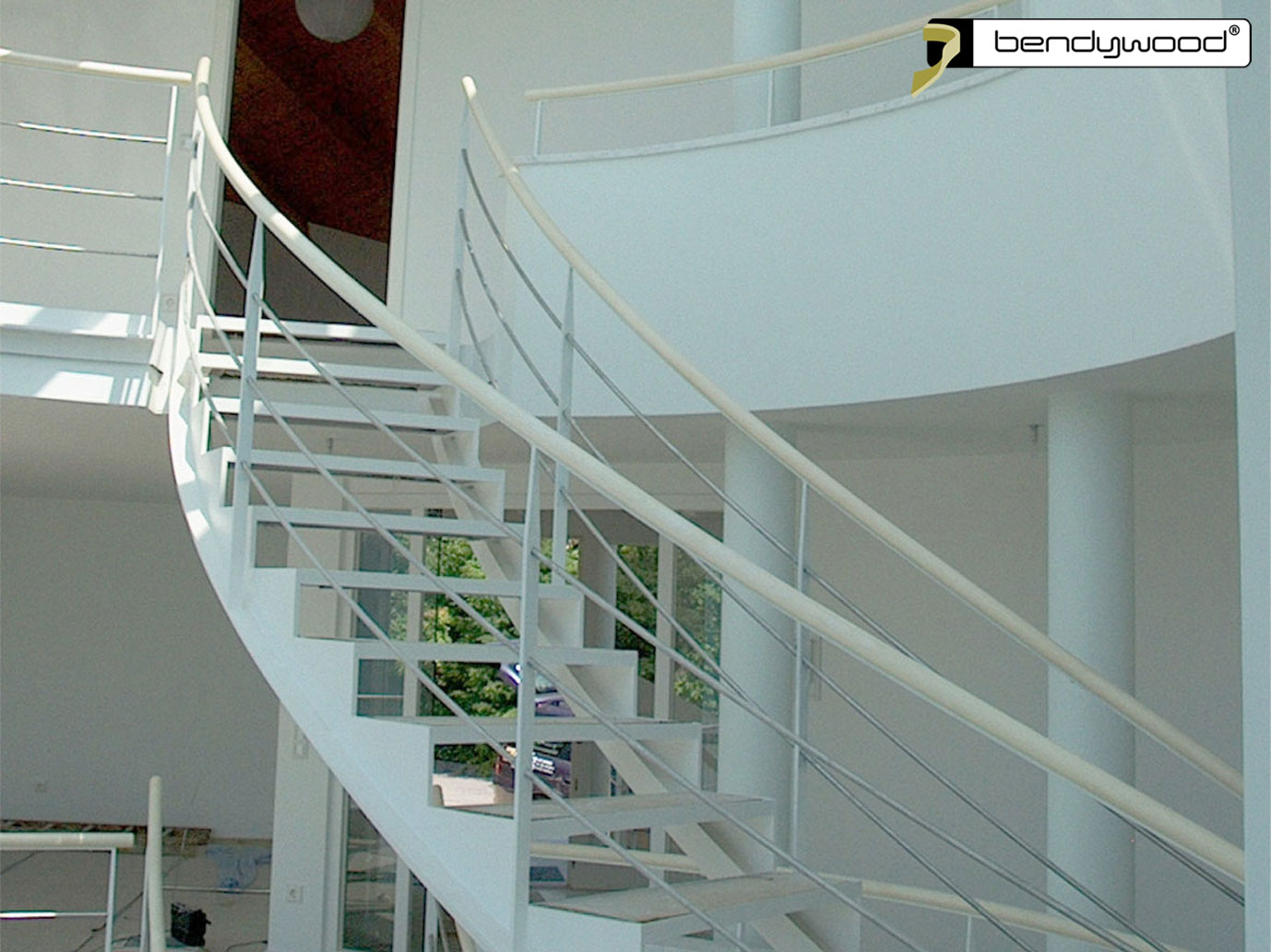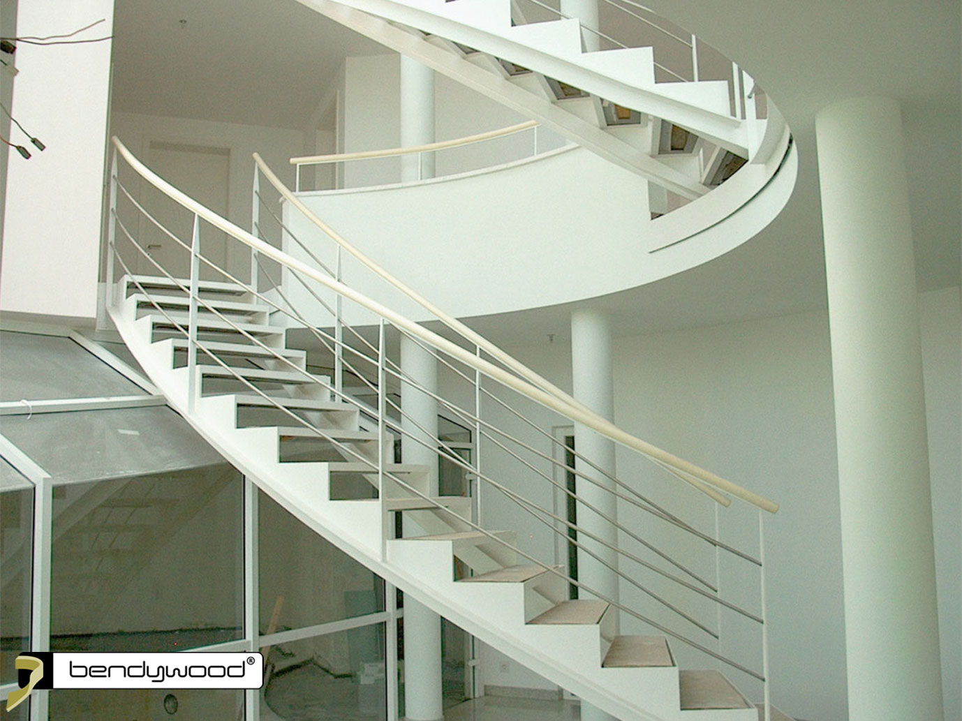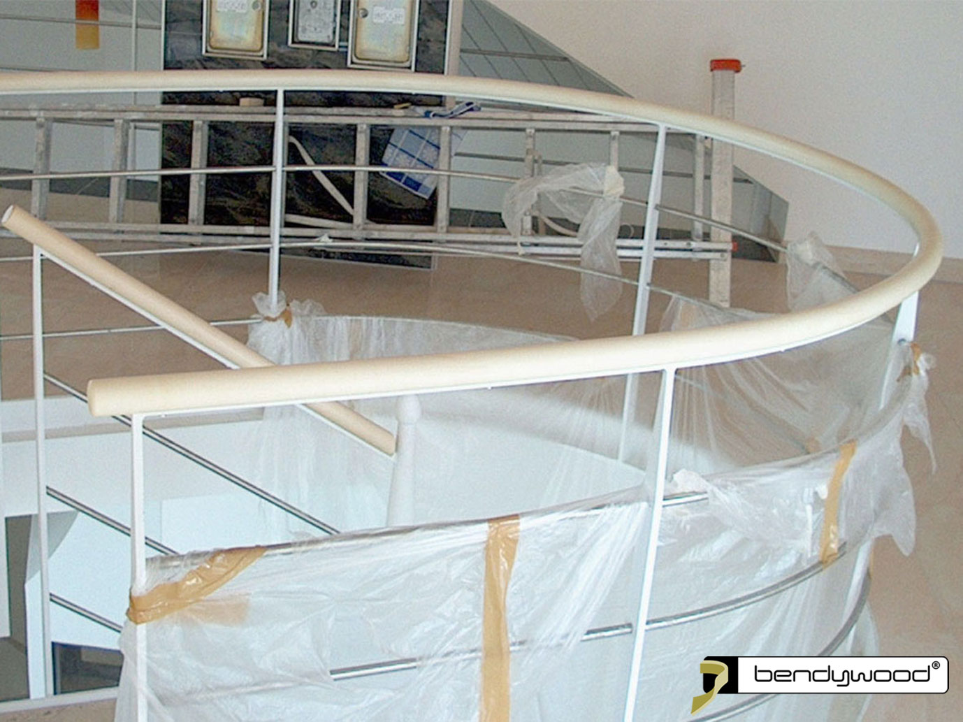 Round bending handrails 40 mm in Bendywood®-maple ; diagonal jointed