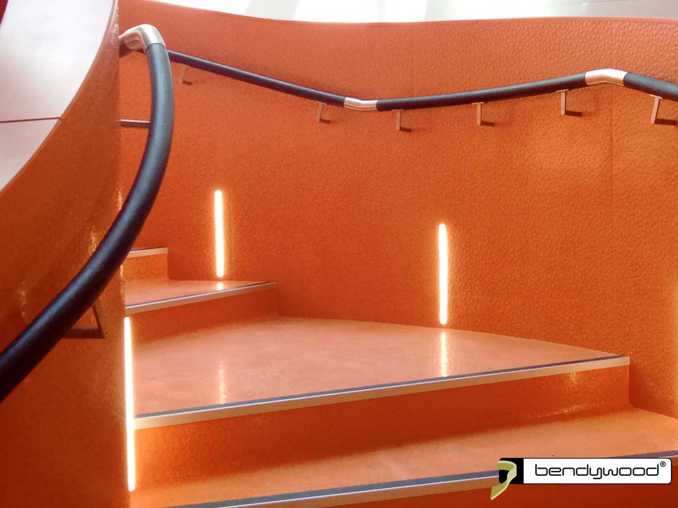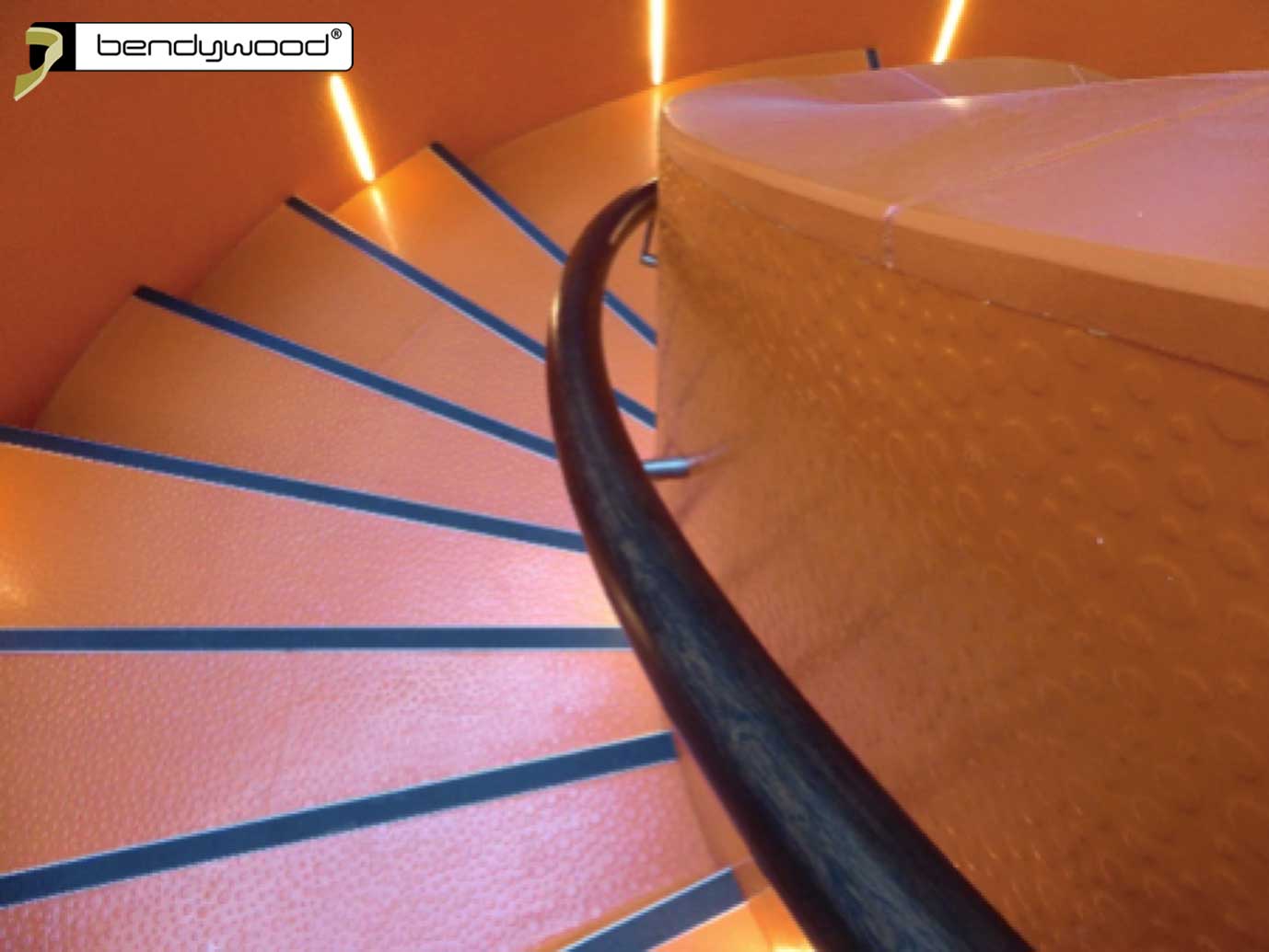 Round bending handrails ø48 mm in Bendywood®-oak ; diagonal jointed