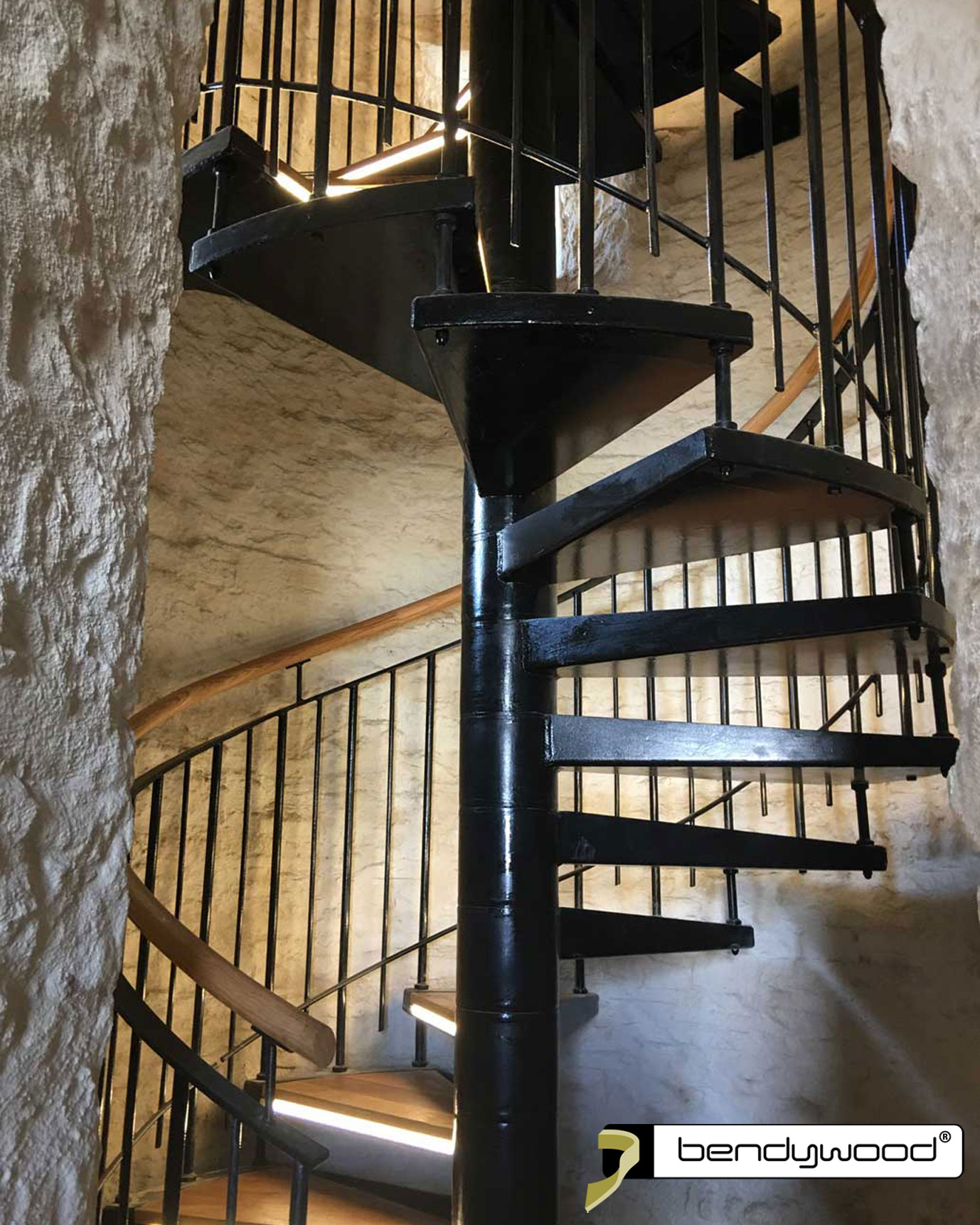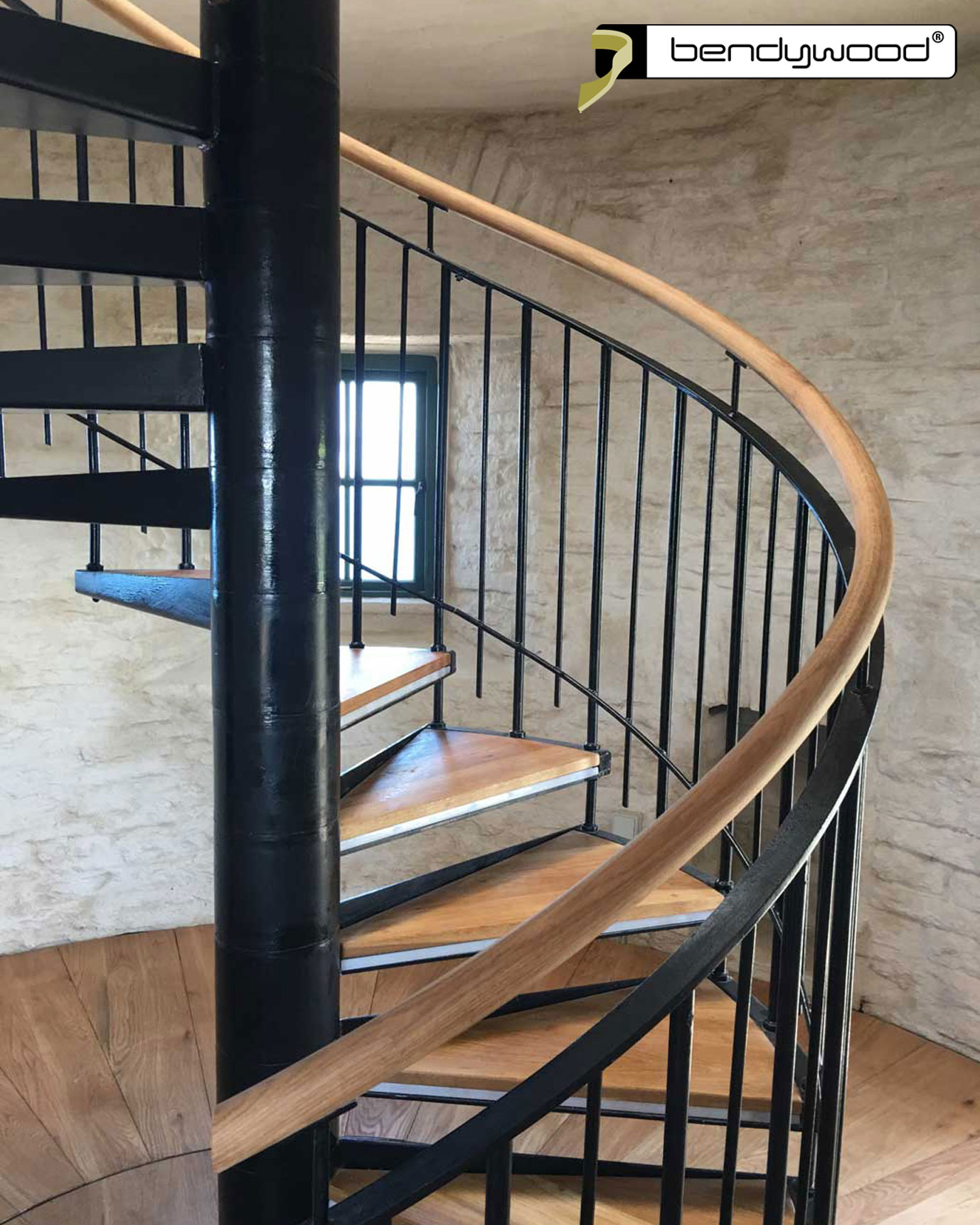Round bending handrails ø45 mm in Bendywood®-oak ; vertical jointed