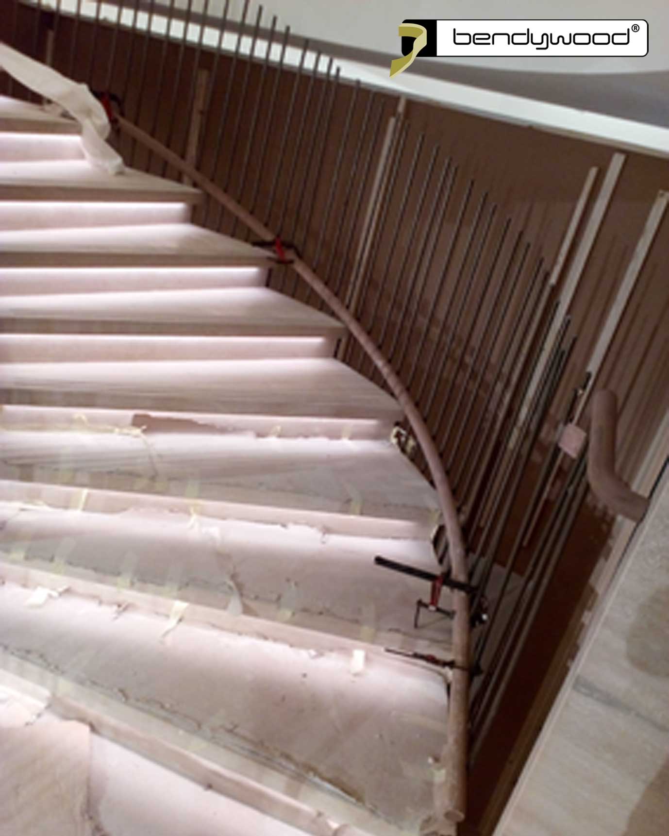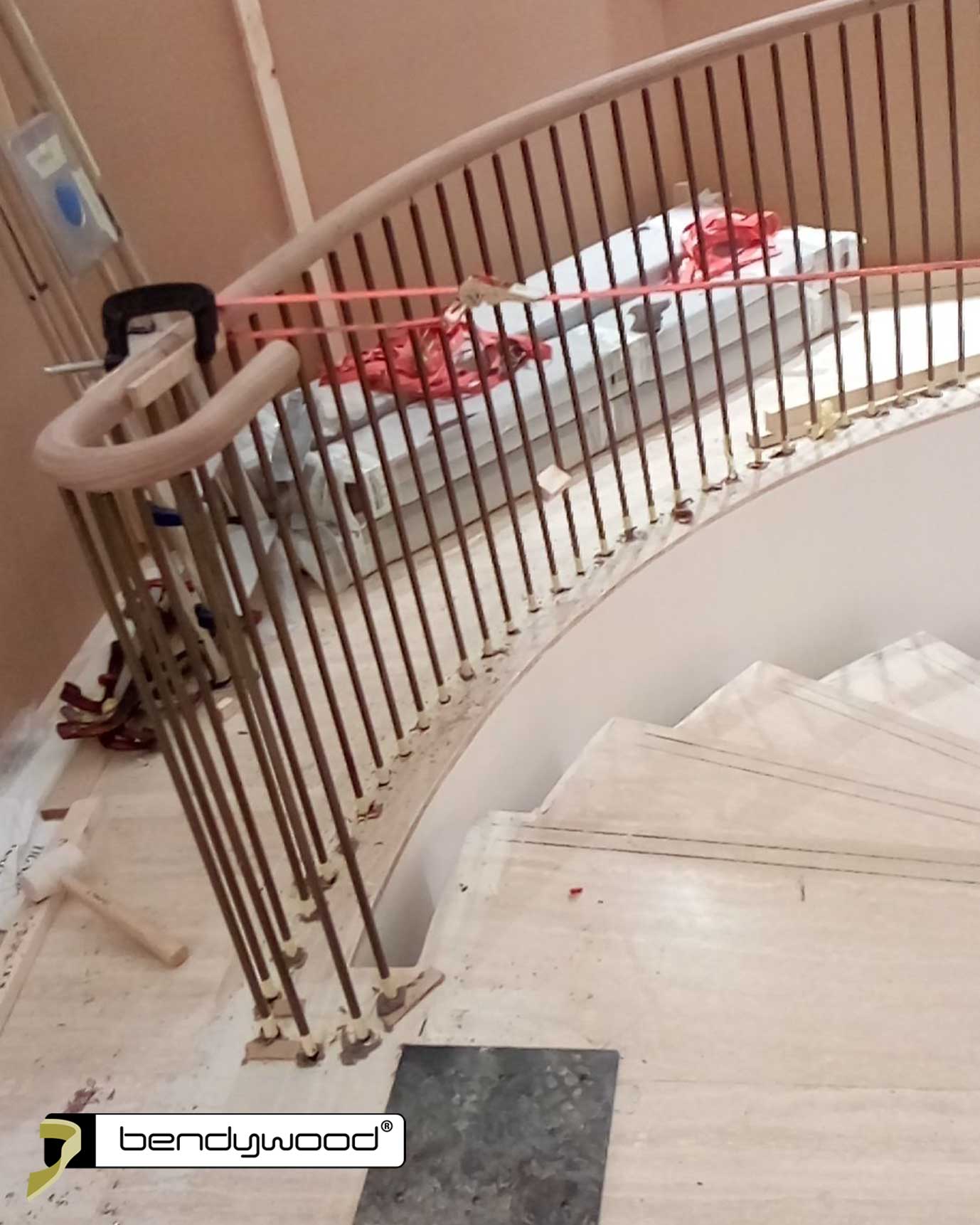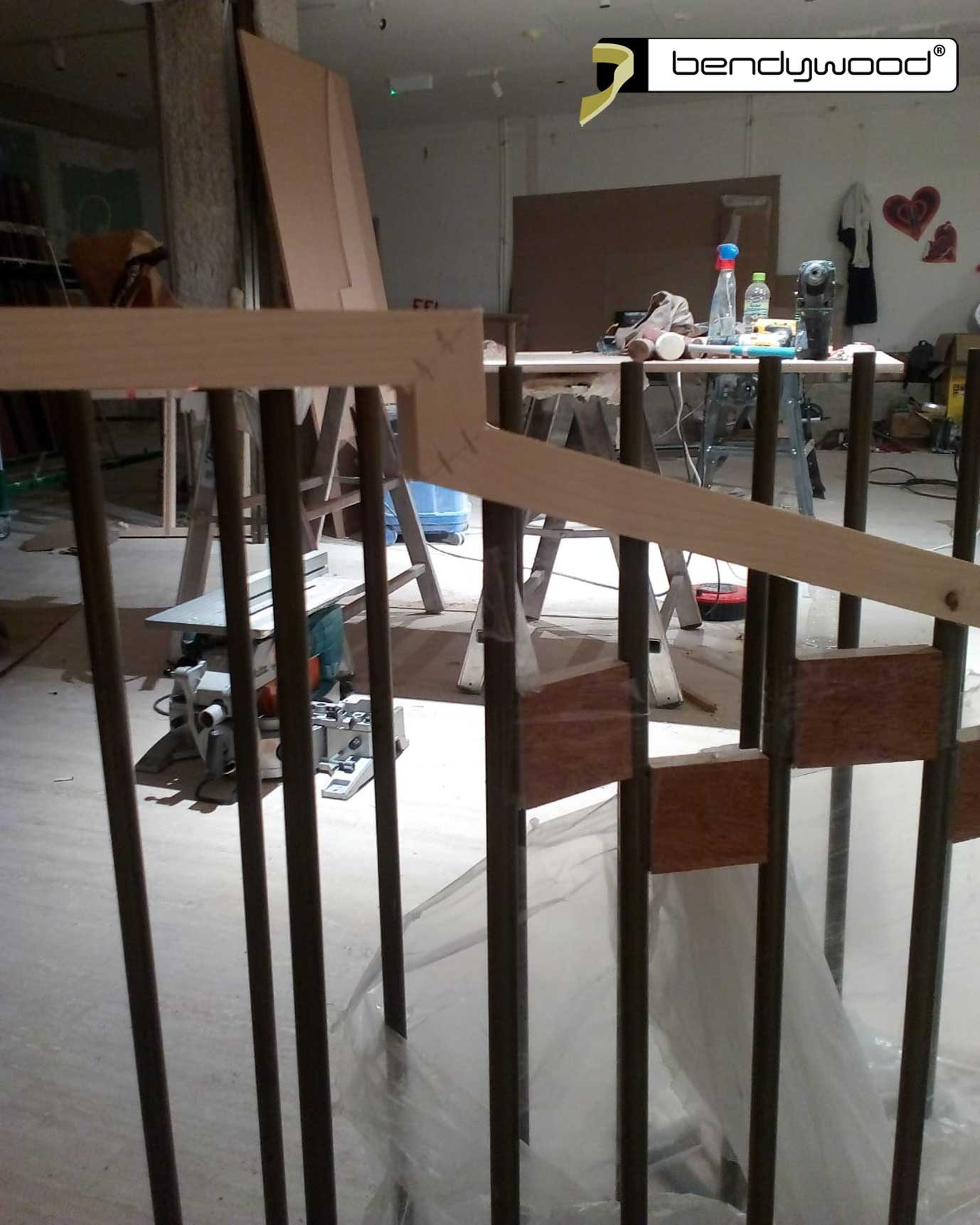 Partly pre-bent in the factory and partly bent on site on moulds that were also included in the shipment - Handrail curves made of Bendywood® lamellas - Made to measure
