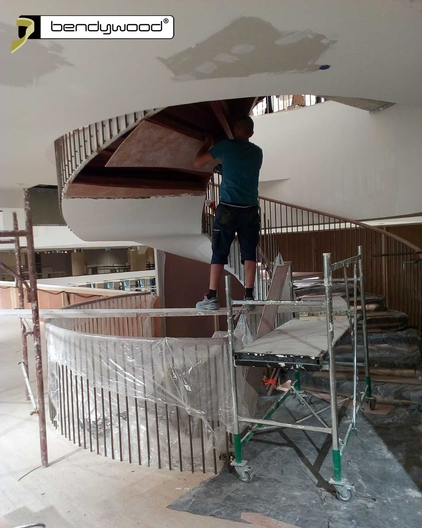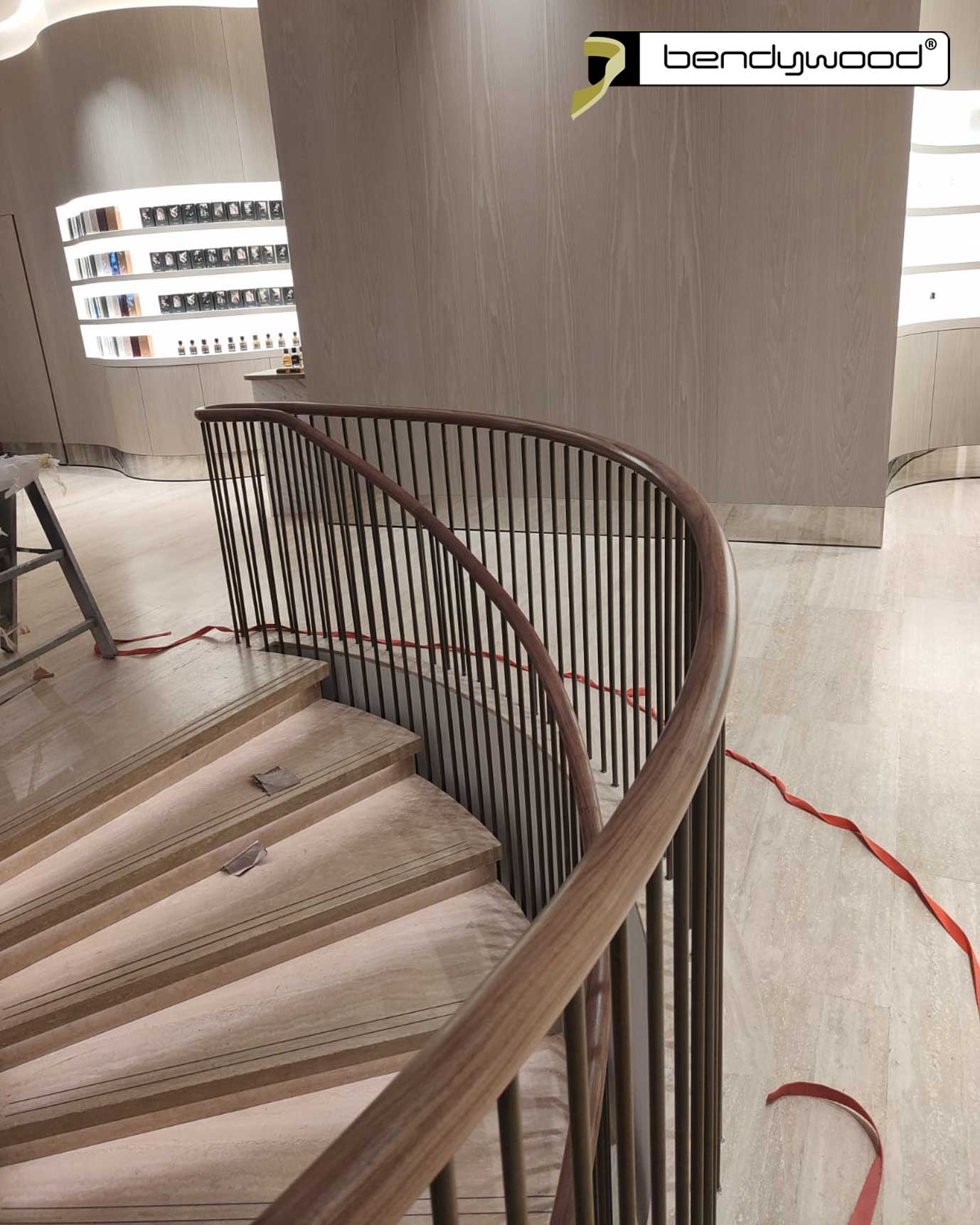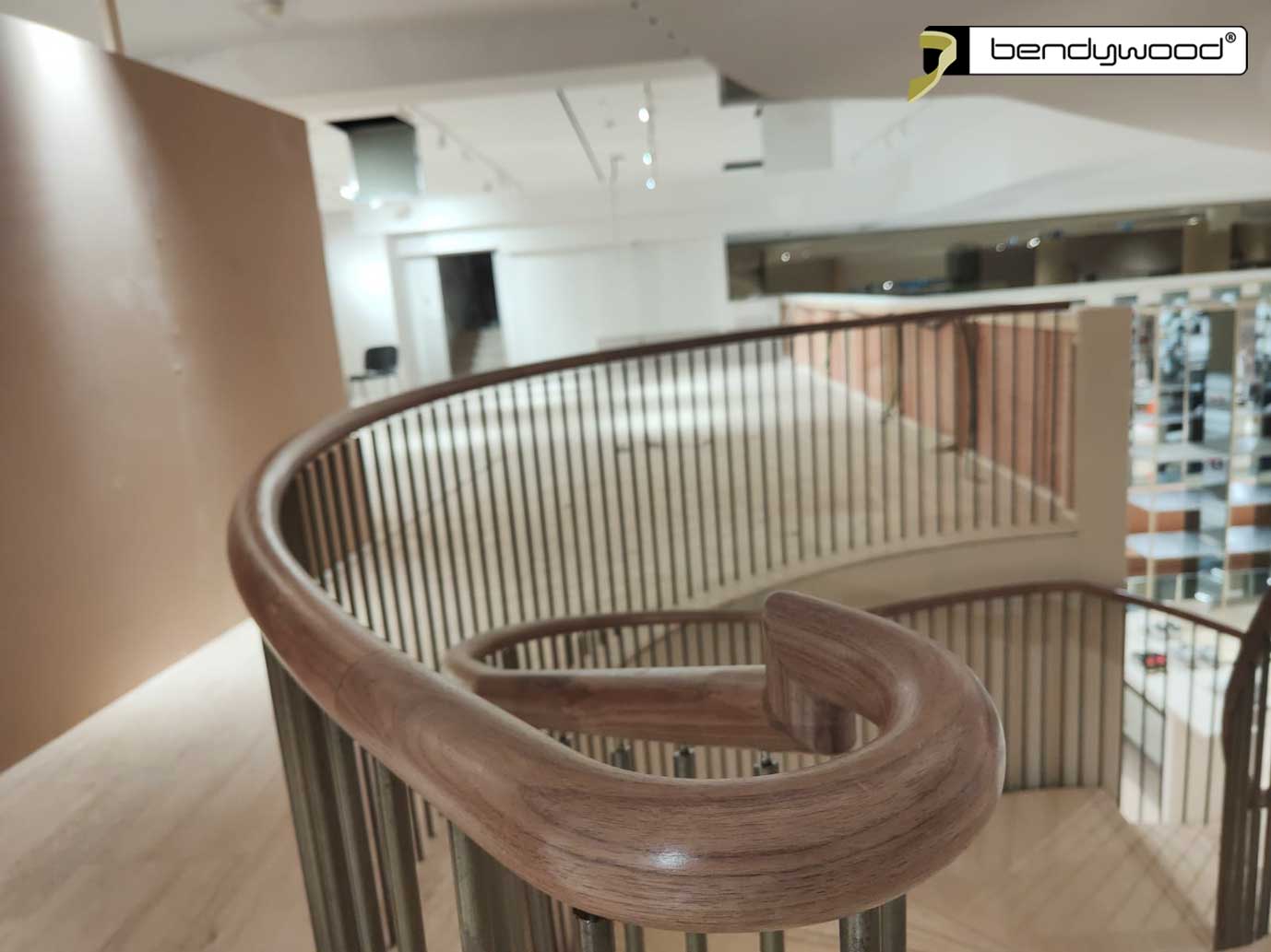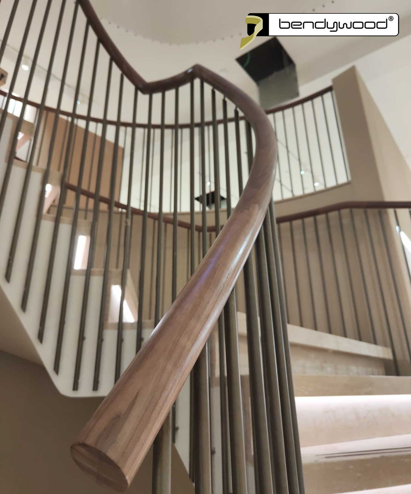 Partly pre-bent in the factory and partly bent on site on moulds that were also included in the shipment - Handrail curves made of Bendywood® lamellas - Made to measure