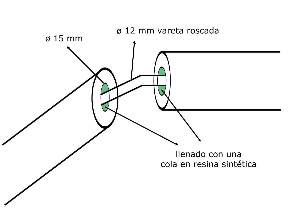 - Lenar los huecos con una cola en resina sintética, pues insertar una vareta roscada de diámetro un poco más pequeño de lo de los huecos;